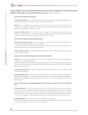 INFORME INDIVIDUAL AVANCE DE LA CUENTA PÚBLICA CUARTO TRIMESTRE 2022 Estatuto Orgánico de la Universidad Autónoma Comunal de Oaxaca, celebrada con fecha 14 de diciembre