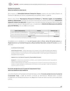 Solicitud de Aclaración INFORME INDIVIDUAL AVANCE DE LA CUENTA PÚBLICA CUARTO TRIMESTRE 2022