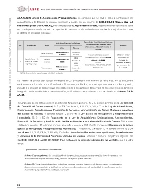 INFORME INDIVIDUAL AVANCE DE LA CUENTA PÚBLICA CUARTO TRIMESTRE 2022 AEAAA1022 Anexo 8 Asignaciones Presupuestarias, se constató que se llevó a cabo la contratación de