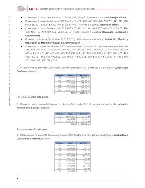 • Cuentas por Liquidar Certificadas CLC´S 407, 420, 422, 431, 441, 443, 457, 461, 471, 472, 473, 476,