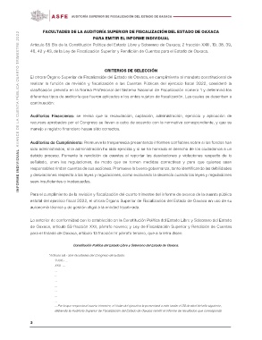 INFORME INDIVIDUAL AVANCE DE LA CUENTA PÚBLICA CUARTO TRIMESTRE 2022 FACULTADES DE LA AUDITORÍA SUPERIOR DE FISCALIZACIÓN DEL ESTADO DE OAXACA