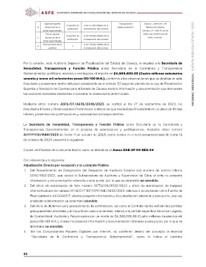 Mediante oficio número ASFE/OT/AEFE/2346/2023, se notificó el día 27 de septiembre de 2023, los