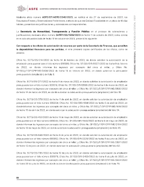 Mediante oficio número ASFE/OT/AEFE/2346/2023, se notificó el día 27 de septiembre de 2023, los