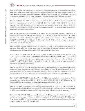 ampliación presupuestal con el folio número 000125; Oficio No. SF/SSI/DIR/4086/2022 de fecha 8 de diciembre