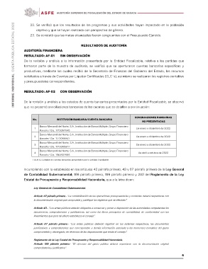 De la revisión y análisis a la información presentada por la Entidad Fiscalizable, relativa a las partidas que
