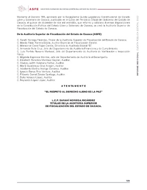 AUDITORÍA SUPERIOR DE FISCALIZACIÓN DEL ESTADO DE OAXACA INFORME INDIVIDUAL CUENTA PÚBLICA ESTATAL 2022