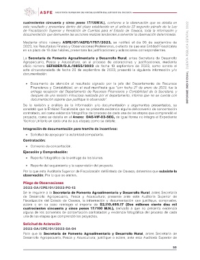 Desarrollo Agropecuario, Pesca y Acuacultura; justifique o aclare, ante esta Auditoría Superior de