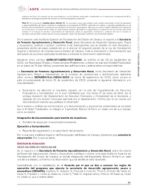 Por lo anterior, esta Auditoría Superior de Fiscalización del Estado de Oaxaca, le requirió a la Secretaría