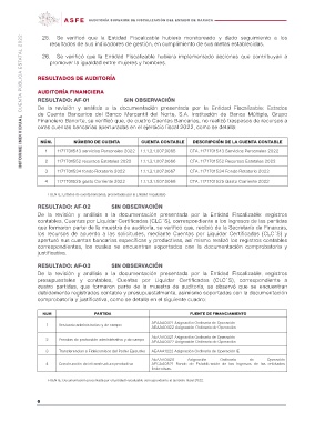INFORME INDIVIDUAL CUENTA PÚBLICA ESTATAL 2022 25. Se verificó que la Entidad Fiscalizable hubiera monitoreado y dado seguimiento a los