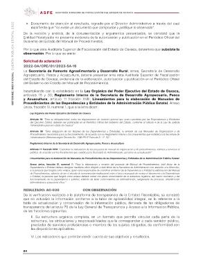 Por lo que esta Auditoría Superior de Fiscalización del Estado de Oaxaca, determina que subsiste la