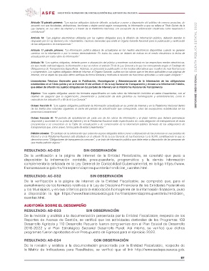 De la verificación a la página de internet de la Entidad Fiscalizable, se comprobó que, para el