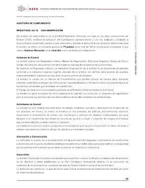 la revisión, se obtuvo un promedio general de 71 puntos de un total de 100 en la evaluación practicada, lo que