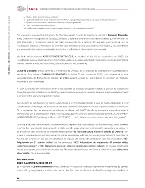 Por lo anterior, esta Auditoría Superior de Fiscalización del Estado de Oaxaca, le requirió a Caminos Bienestar
