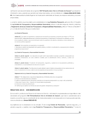 verificación para las actividades del programa 108 “Infraestructura Vial en el Estado de Oaxaca” que muestren