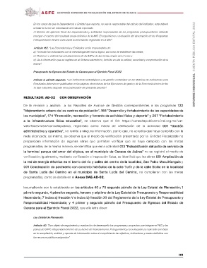 “Mejoramiento urbano de los centros de población”, 166 “Desarrollo y fortalecimiento de las capacidades de