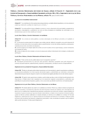 Estatal de Presupuesto y Responsabilidad Hacendaria, artículos 186 y 199; y Reglamento de la Ley de Obras