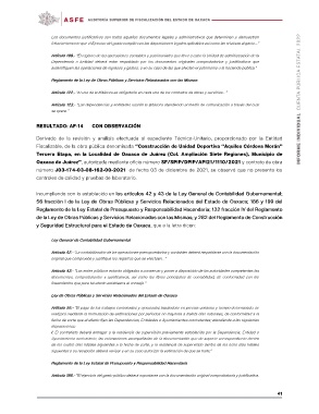 Incumpliendo con lo establecido en los artículos 42 y 43 de la Ley General de Contabilidad Gubernamental;