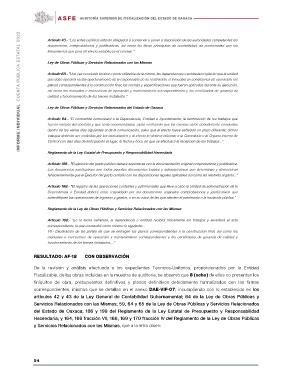 artículos 42 y 43 de la Ley General de Contabilidad Gubernamental; 64 de la Ley de Obras Públicas y