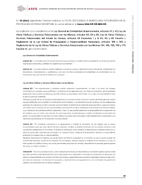Incumpliendo con lo establecido en la Ley General de Contabilidad Gubernamental, artículos 42 y 43; Ley de