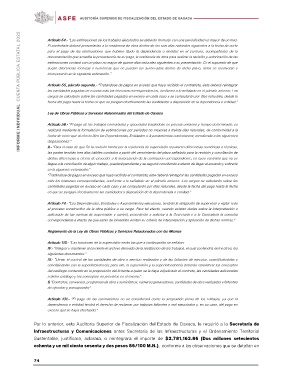 Artículo 74.- “Las Dependencias, Entidades o Ayuntamientos ejecutores, tendrán la obligación de supervisar y vigilar todo