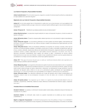 Artículo 23: “La Secretaría asignará clave de financiamiento a cada una de sus cuentas bancarias; será responsabilidad de las