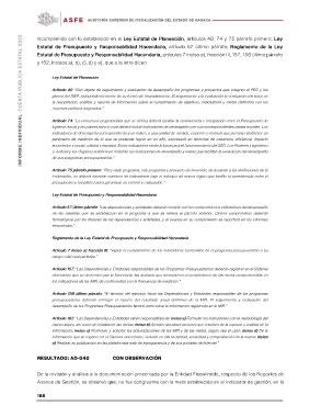 Artículo 162: “Las Dependencias y Entidades serán responsables de: inciso a) Formular los indicadores con la metodología del