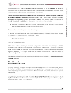 El Instituto Oaxaqueño Constructor de Infraestructura Educativa deberá presentar ante esta Auditoria Superior