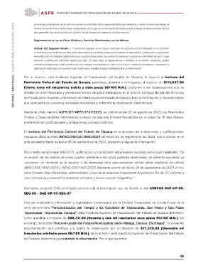 Patrimonio Cultural del Estado de Oaxaca, justificara, aclarara o reintegrara, el importe de $113,637.96