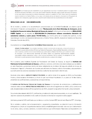 Patrimonio Cultural del Estado de Oaxaca, justificara o aclarara, conforme a las observaciones que se detallan