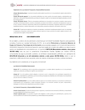 De la revisión y análisis a la documentación presentada por la Entidad Fiscalizable: Registros presupuestales,
