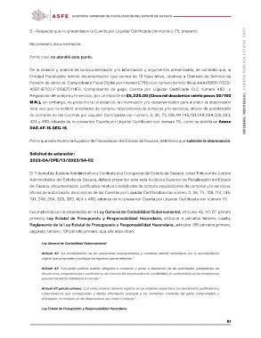 5.- Respecto que no presentaron la Cuenta por Liquidar Certificada con número 75, presentó:
