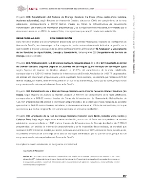 correspondiente a 1,324.13 metros lineales de Infraestructura de Drenaje Ampliados de 1,451.77 programados;