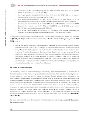 • Cédula de Aclaración al Resultado, Pólizas de egresos, transferencias bancarias, Comprobantes Fiscales