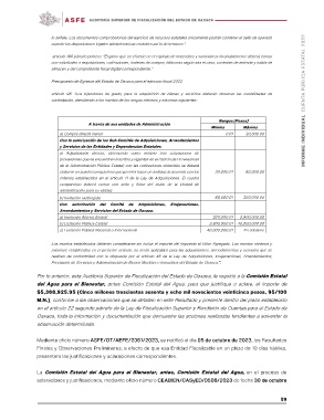 en el artículo 22 segundo párrafo de la Ley de Fiscalización Superior y Rendición de Cuentas para el Estado de