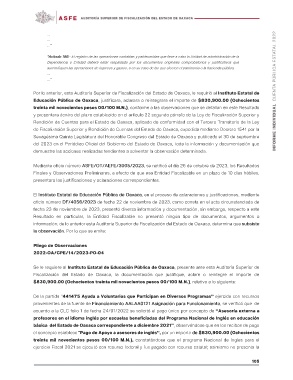 Educación Pública de Oaxaca, justificara, aclarara o reintegrara el importe de $830,900.00 (Ochocientos