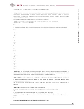 Reglamento de la Ley Estatal de Presupuesto y Responsabilidad Hacendaria. INFORME INDIVIDUAL CUENTA PÚBLICA ESTATAL 2022