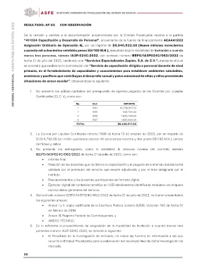 INFORME INDIVIDUAL CUENTA PÚBLICA ESTATAL 2022 RESULTADO: AF-03 CON OBSERVACIÓN