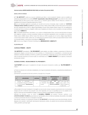 d)Prestar los servicios a que se refiere la CLAUSULA PRIMERA del presente Contrato, conforme a las
