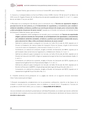 7.-Presentó documentación complementaria de los proveedores participantes, descrita en las bases de la