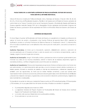 INFORME INDIVIDUAL CUENTA PÚBLICA ESTATAL 2022 AUDITORÍA SUPERIOR DE FISCALIZACIÓN DEL ESTADO DE OAXACA