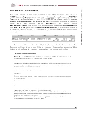 Incumpliendo con lo establecido en los artículos 42 párrafo primero y 43 de la Ley General de Contabilidad