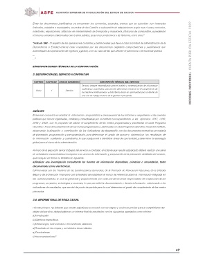 El servicio consistirá en analizar la información programática y presupuestal de los informes y seguimiento a las cuentas