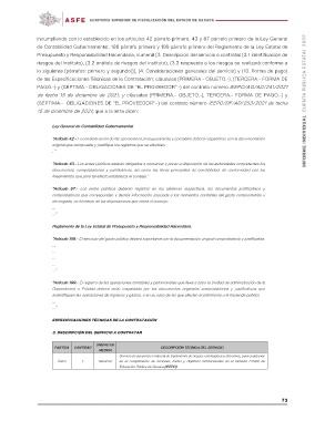 Incumpliendo con lo establecido en los artículos 42 párrafo primero, 43 y 67 párrafo primero de la Ley General INFORME INDIVIDUAL CUENTA PÚBLICA ESTATAL 2022