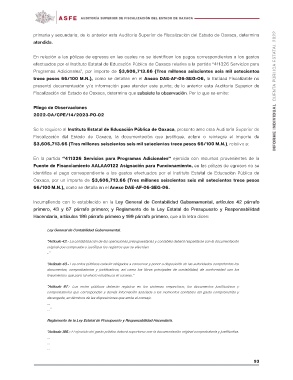 primaria y secundaria; de lo anterior esta Auditoria Superior de Fiscalización del Estado de Oaxaca, determina INFORME INDIVIDUAL CUENTA PÚBLICA ESTATAL 2022