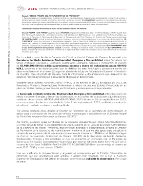 Superior de Fiscalización del Estado de Oaxaca, determina que subsiste la observación. Por lo que