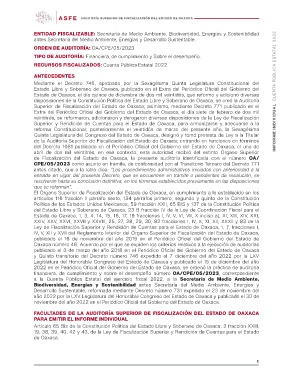 AUDITORÍA SUPERIOR DE FISCALIZACIÓN DEL ESTADO DE OAXACA INFORME INDIVIDUAL CUENTA PÚBLICA ESTATAL 2022