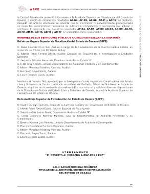 AUDITORÍA SUPERIOR DE FISCALIZACIÓN DEL ESTADO DE OAXACA INFORME INDIVIDUAL CUENTA PÚBLICA ESTATAL 2022