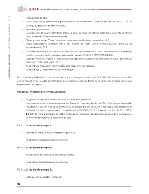 • Programa de ejecución de la obra, acción e inversión, presentó: