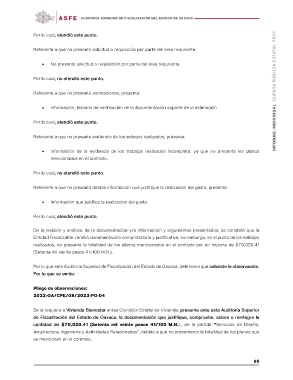 Entidad Fiscalizable, remitió documentación comprobatoria y justificativa, sin embargo, en el punto de los trabajos