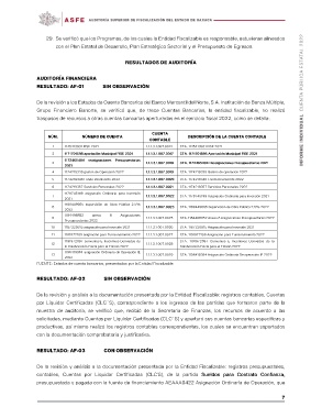 De la revisión y análisis a la documentación presentada por la Entidad Fiscalizable: registros contables, Cuentas